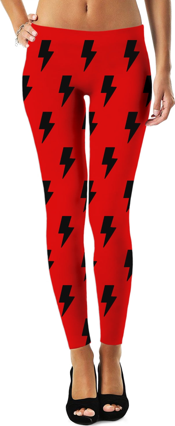 Black Lightning Bolts Red Leggings