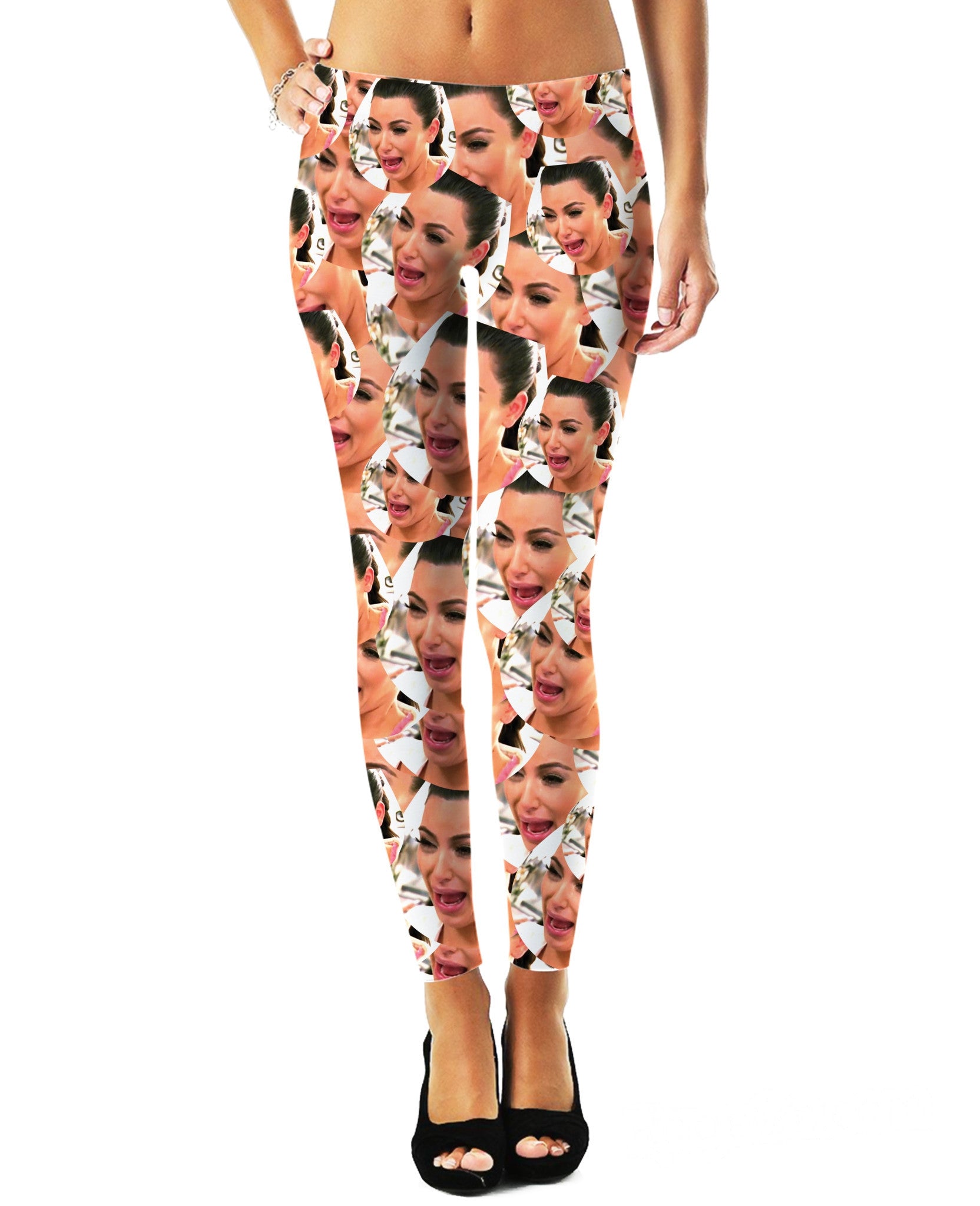 Let her cry in these all-over print Crying Kim Leggingsdesign from our in-house brand, Classics! These sexy leggingsfeatures the reality tv star Kim Kardashian cryingin a collage design! Show the world what an ugly cryer Kim K is with these vibrant leggings design today.