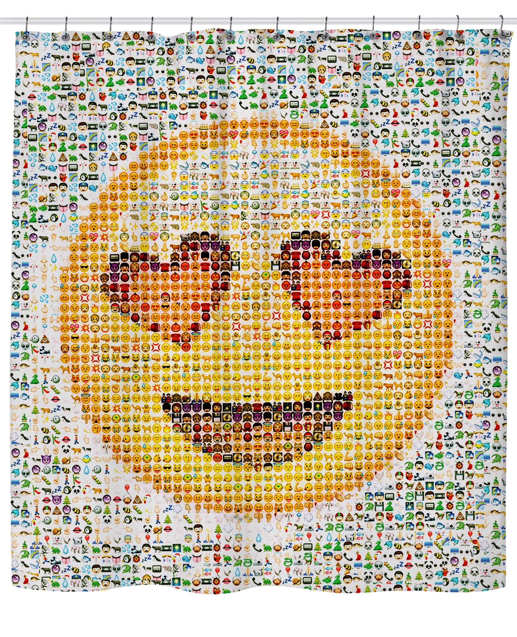 Check out this vibrant Emoji Shower Curtain featuring a photographic mosaic of the cute emoticons that have taken over our texting and internet lives! This fully-sublimated all-over print bath curtain from our Classics brand is available now. Get this rad design for your bathroom, apartment, or college dorm today!