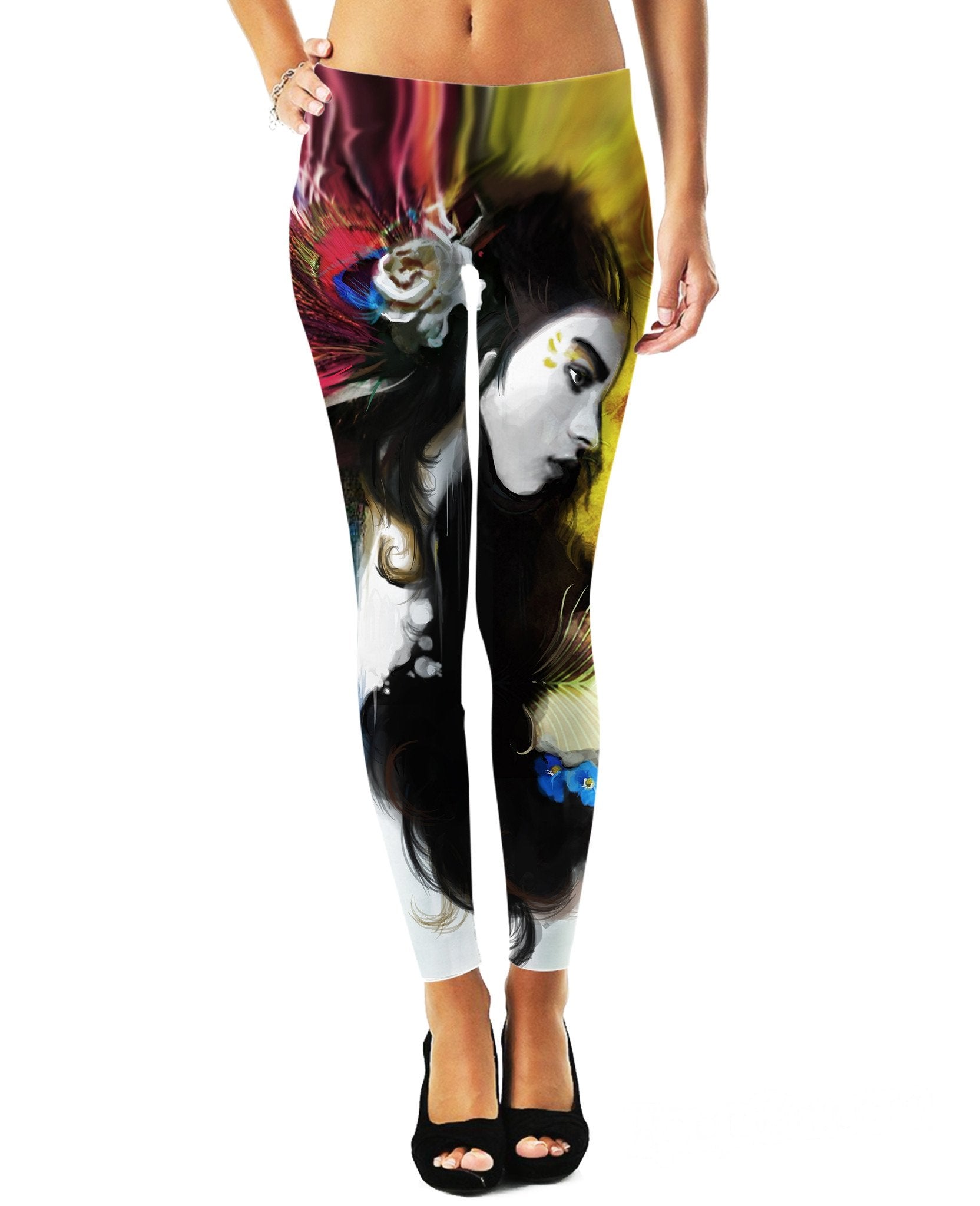 Get these awesome Femme Fatale Leggingsfrom artist Amie Stoltz! Only at RageOn!! These leggings feature a stunning beauty with a dash of color and beautiful flowers. Get stylish with these awesome leggings!!