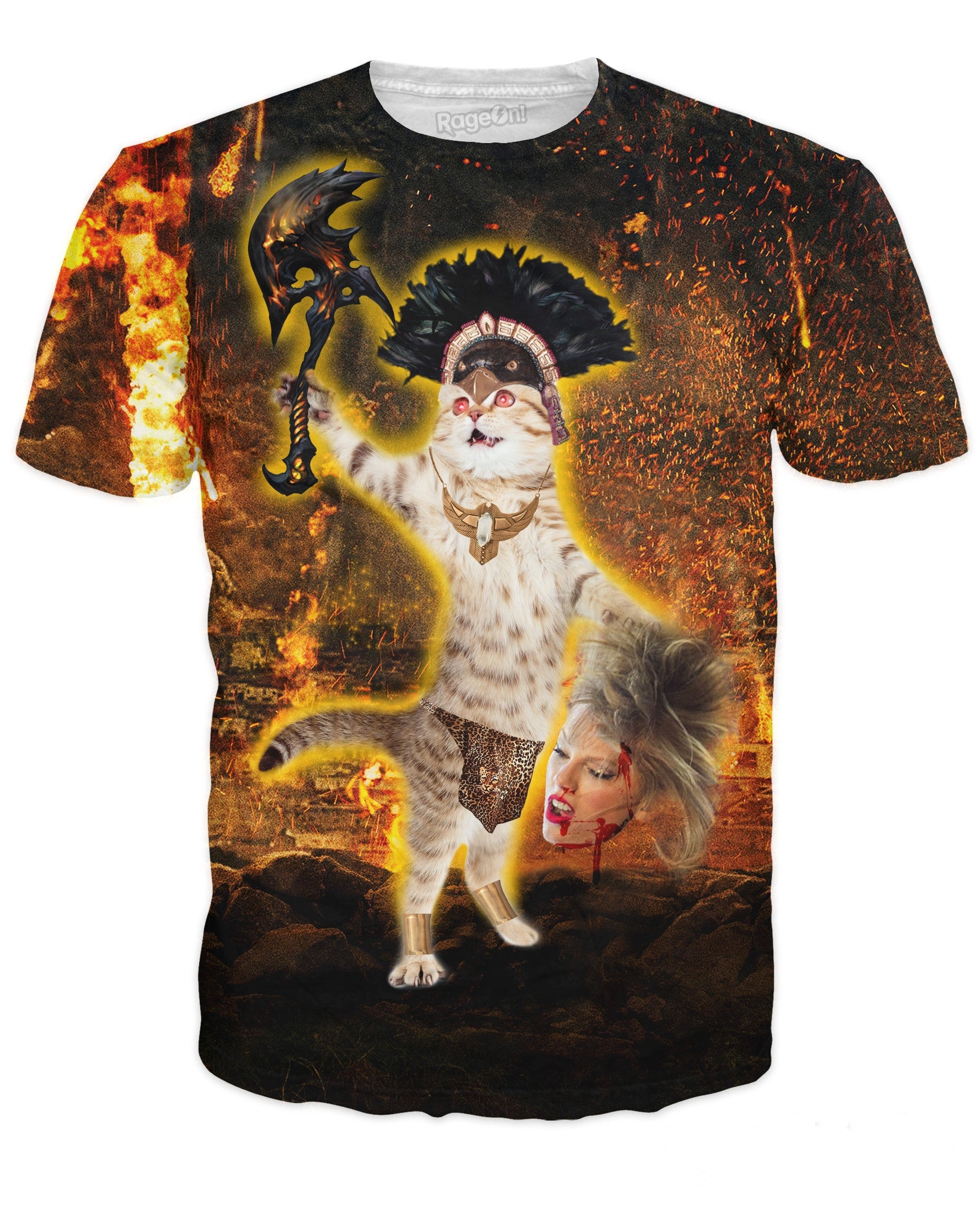 This kitty just made an unexpected sacrifice of Taylor Swift's head on this all-over print design and is available!