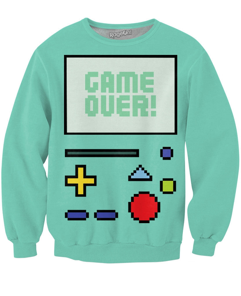 Every gamer needs this all-over print Game Over BMO Crewneck Sweatshirt from our Classics brand! This fully sublimated jumper is inspired by the gameboy style cartoon character from Adventure Time! Show your love for video games and get this vibrant sexy sweater today.