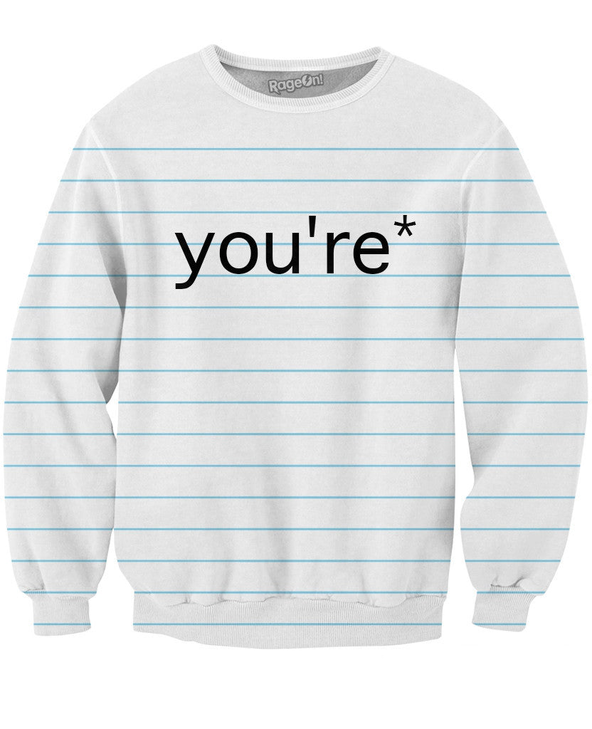 Whether you're good at grammar or terrible like most Americans, get this Good Grammar You're* Crewneck Sweatshirt to remind you how to spell or to help out those near you! Get this awesome Crewneck Sweatshirt.