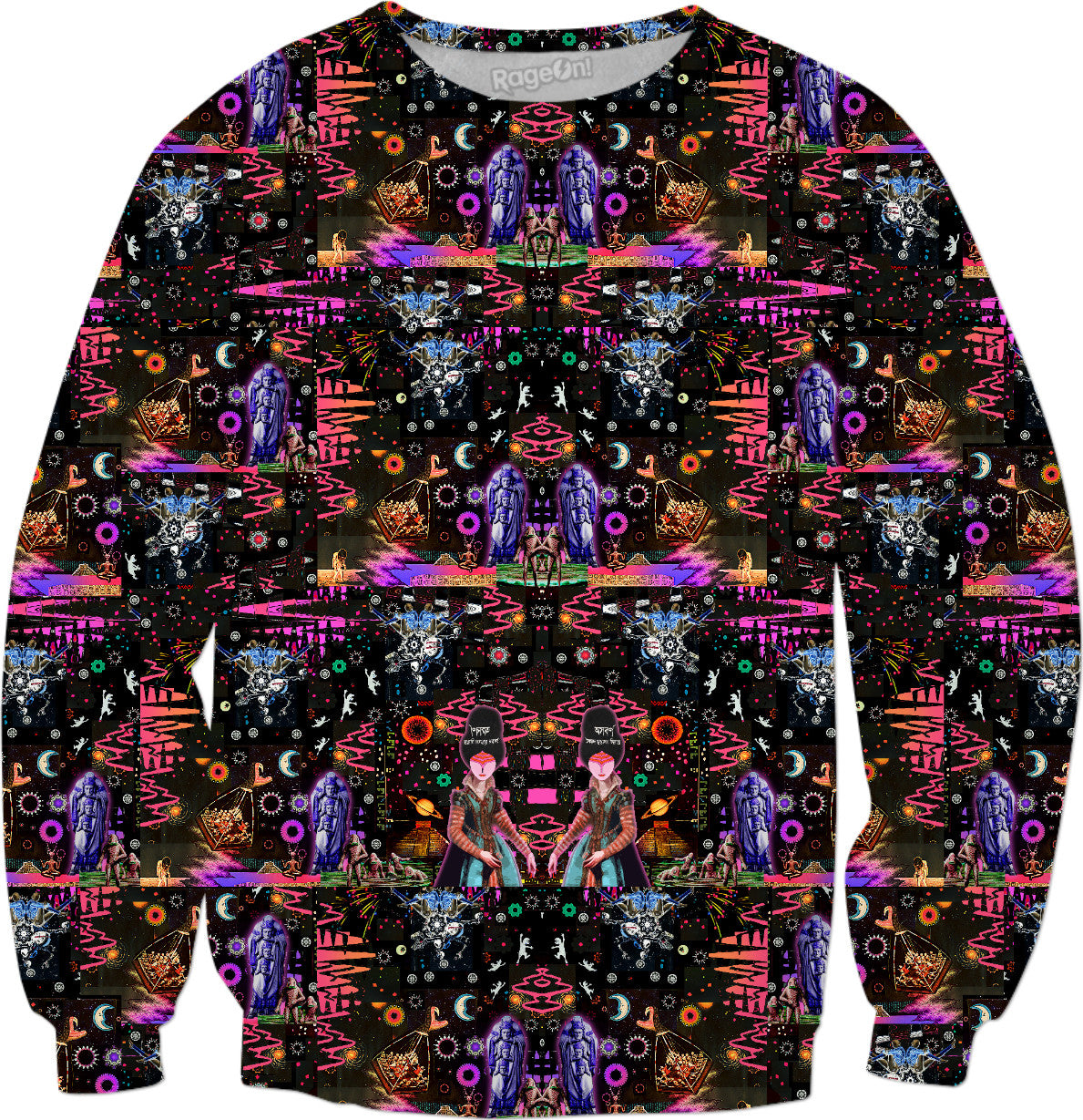 Check out this super cosmic all-over print Interstellar Echolocation Sweatshirt by visionary artist Larry Carlson! This vibrant Sweatshirt will trip you out with vibrant pops of color and crazy psychedelic patterns!