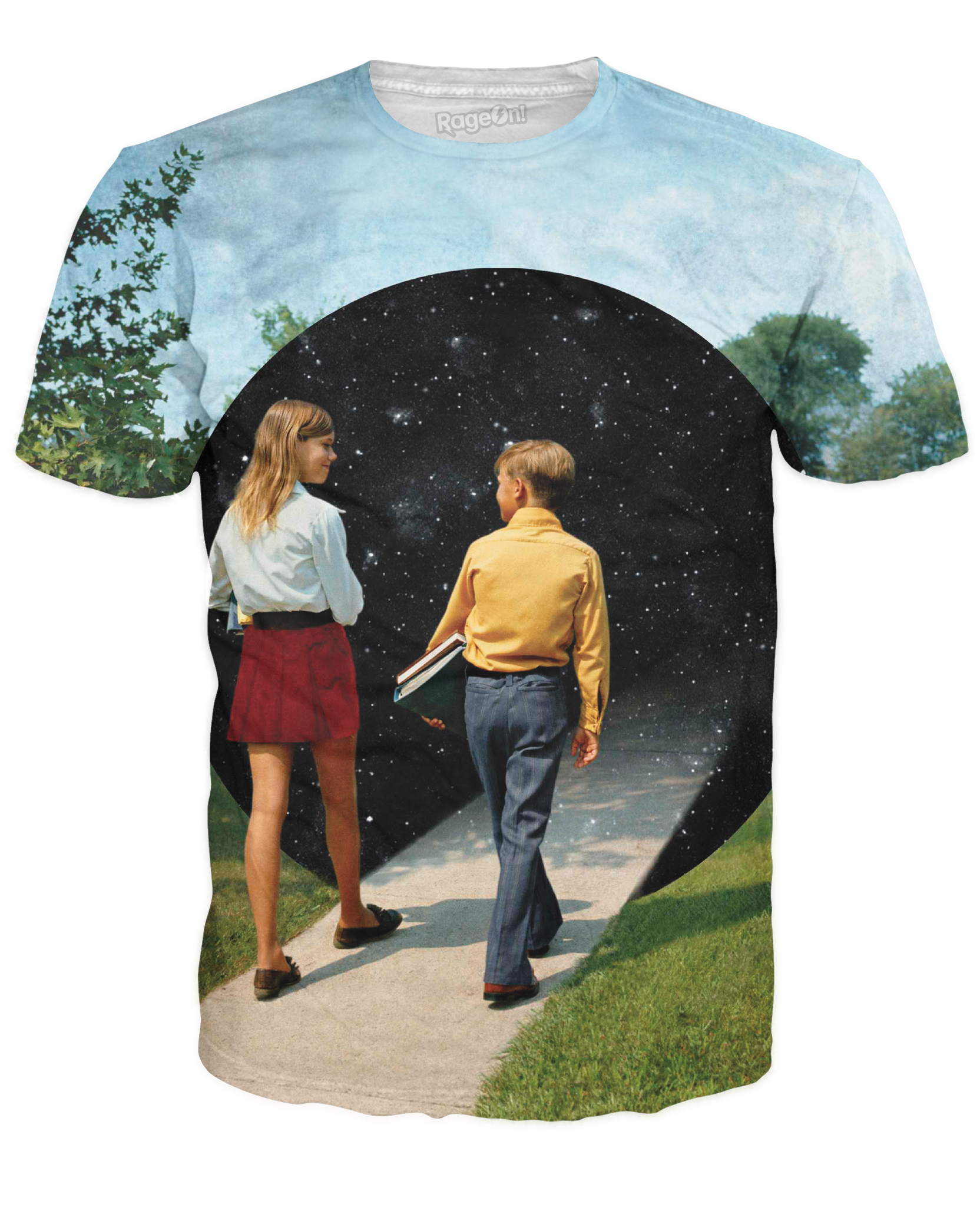Check out this Into The Black Hole T-Shirt from our Urban Threads brand! This all-over print tee is printed with vintage artwork featuring school kids walking into a black hole! Get this trippy fully sublimated hipster design now.