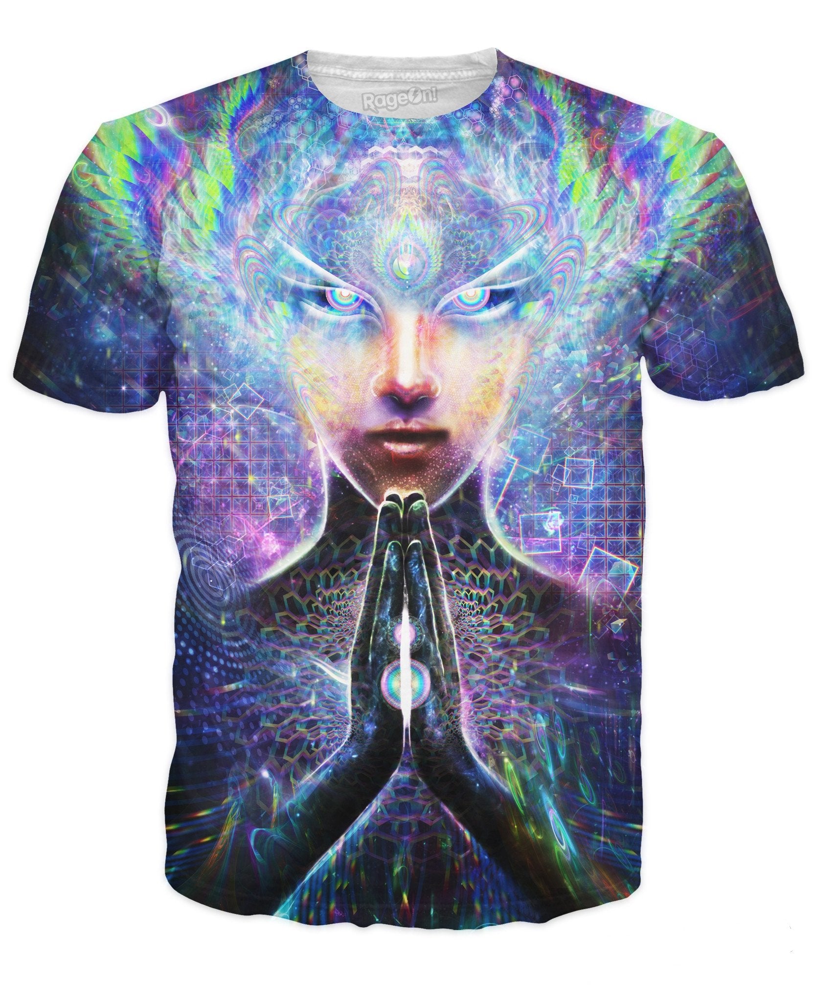 This all-over print Multidimensional Prayer T-Shirt will have you looking at every detail. This vibrant piece has a wide range of colors that will leave you in awe. This psychedelic tee will bring a little zen to your life. Get it only at RageJunkie.com!