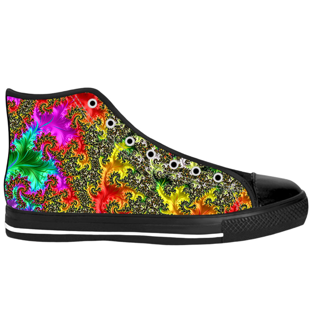 Rainbow Fractal High Tops Now Available! Follow Us On Instagram @PSYCHEDELIABOOK WWW.PSYCHEDELIABOOK.COM