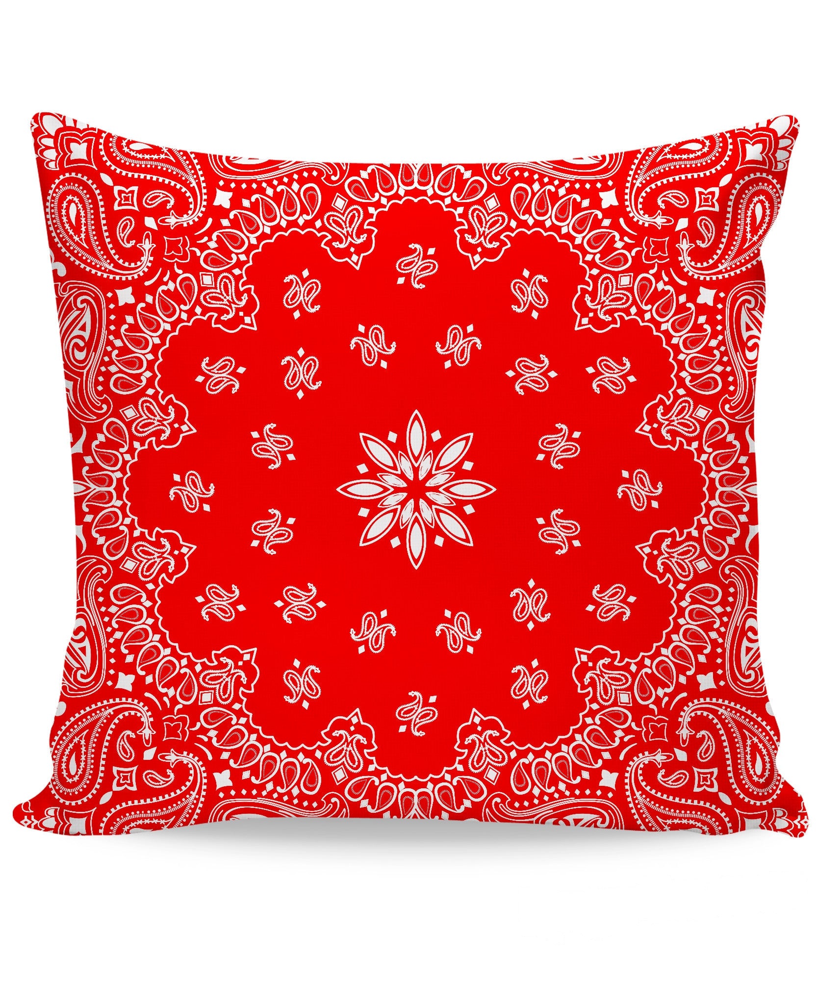 Add a bit of boho flair to your apartment with this all-over print Red Bandana Couch Pillow from our Let?s Rage brand! Show off your edgy style with this fully-sublimated handkerchief pillow, a classic design that is perfect for your college dorm, home, or apartment! Hold your head hostage with this cozy bandit pillow today.