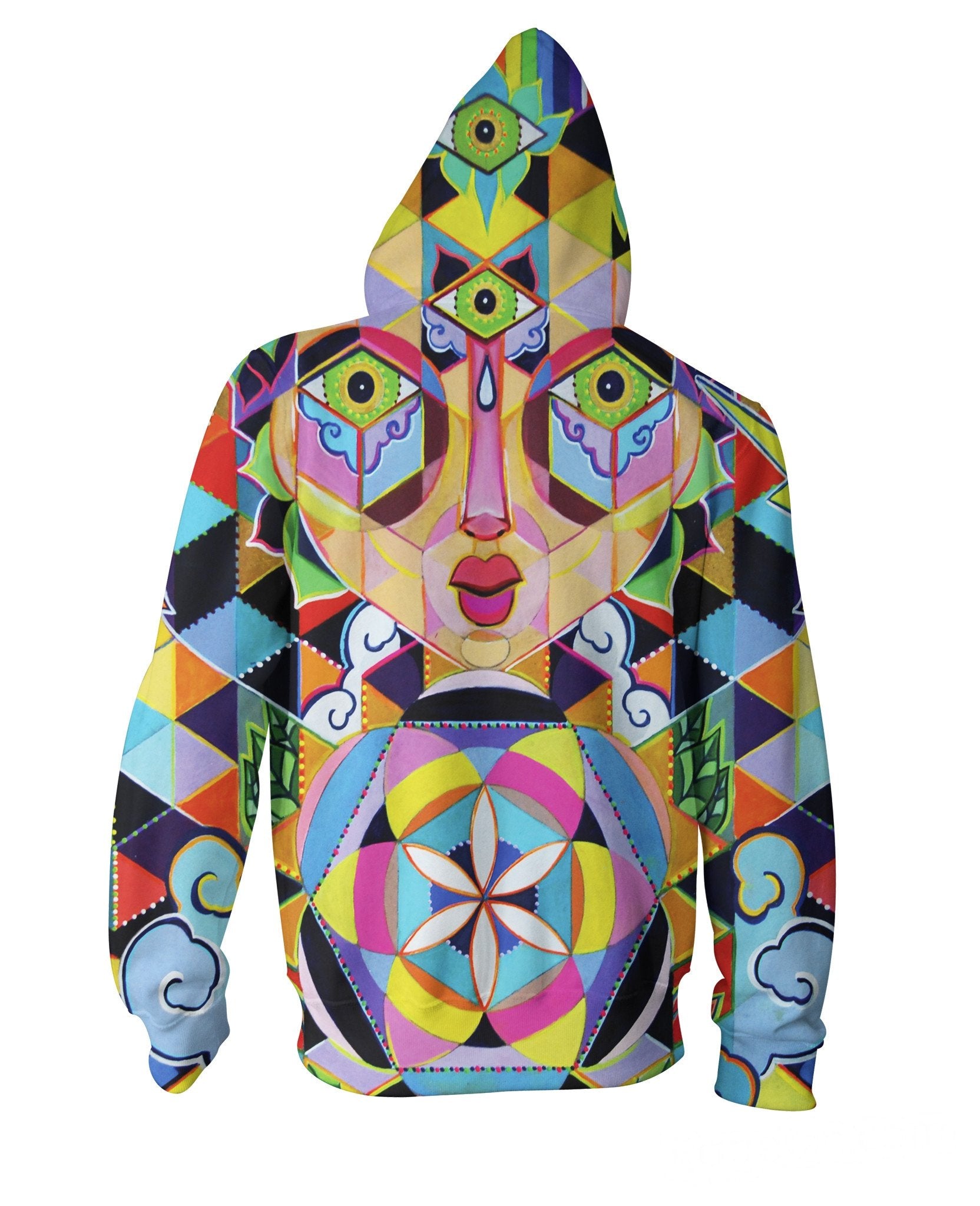 Check out this out this Shakalakti Zip-Up Hoodie from artist David Frank featuring vibrant colors and detailed cultural art. This geometric art hoodie is available now, so get yours exclusively on RageOn!