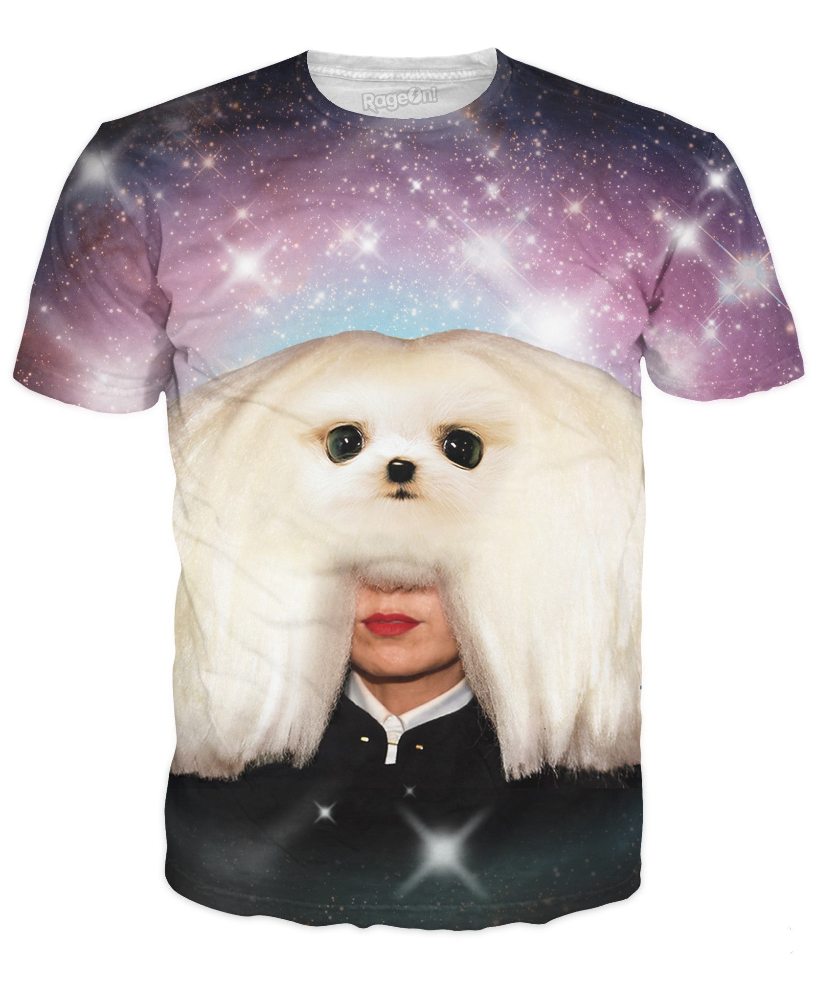 Have the biggest hair for the Grammy's with this all-over print Sia T-Shirt design! This sexy tee features a high-quality image of the musician Sia with a giant blonde wig turned doggy! Keep the cameras off your face and onto this vibrant t-shirt design today.