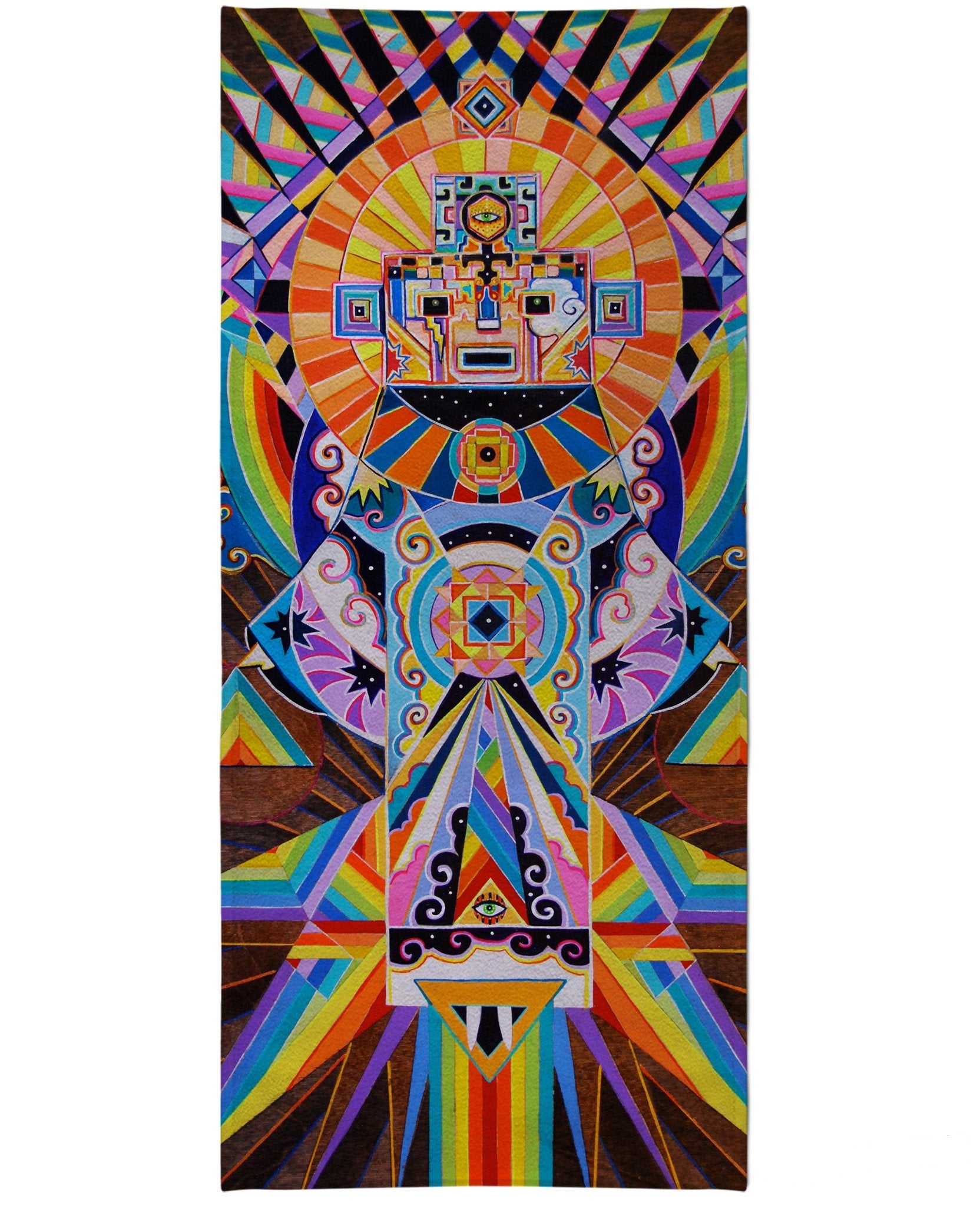 Check out this out this psychedelic Sky Being Beach Towel from artist David Frank featuring vibrant colors, detailed cultural art, and a trippy sky being. This South American art one-sided beach towel is available now, so get your sexy towel exclusively at RageOn!
