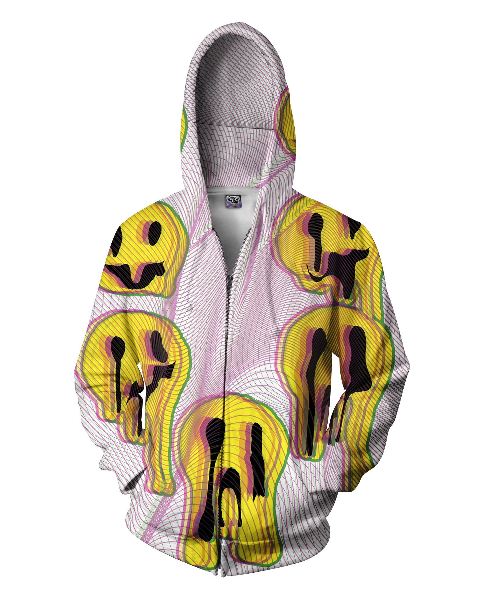 Get this all-over print Wax Smile Zip-Up Hoodie from Psychedelia and maximize your comfort while your watching the faces melt!.